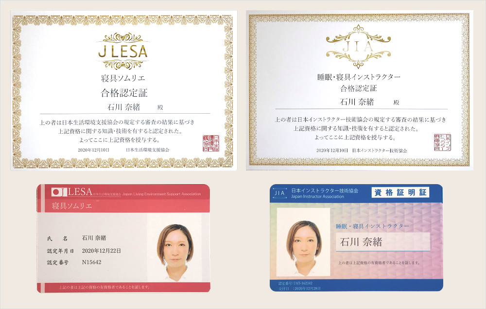 当社スタッフが「寝具ソムリエ」「睡眠・寝具インストラクター」の認定試験に合格しました。
