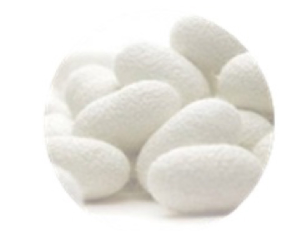 繭糸はファインプロインという物質と、それを取り巻くセリシンという二重構造で構成されています。セリシンは人間の肌に含まれる成分と極めて近い組織であるため、理想的な天然の保湿成分として医療や美容への応用も進められるなど注目を浴びています。また、保湿性があるため静電気が起こりにくく、ほこりやチリを寄せ付けない上に消臭・抗菌作用もあるので清潔で衛生的です。